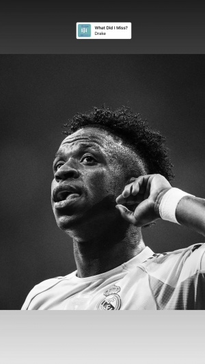体育资讯08月26日讯 北京时间8月25日晚,维尼修斯更新社媒晒出一张照片,同时分享了德雷克一首歌《What Did I Miss》的部分。